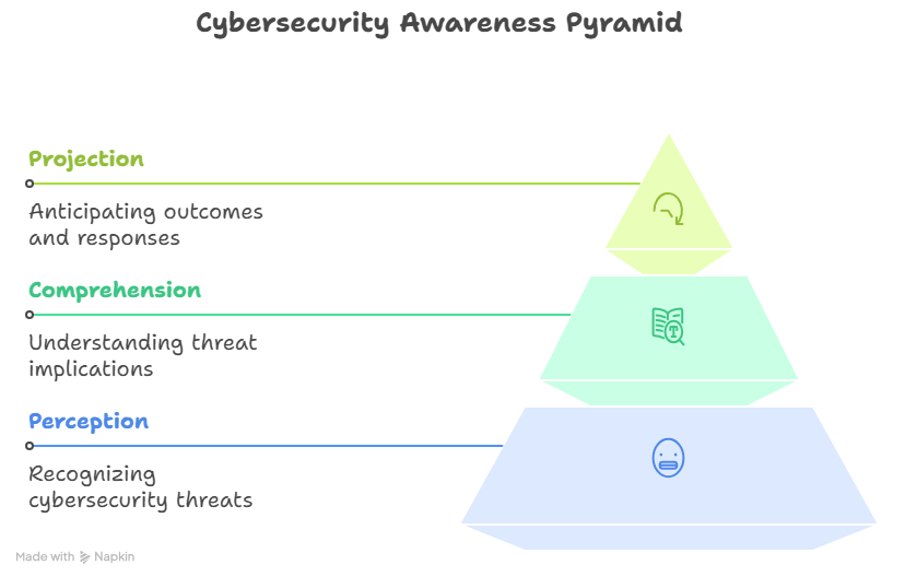 Cybersecurity Situational Awareness is broken down into three important stages. These are: